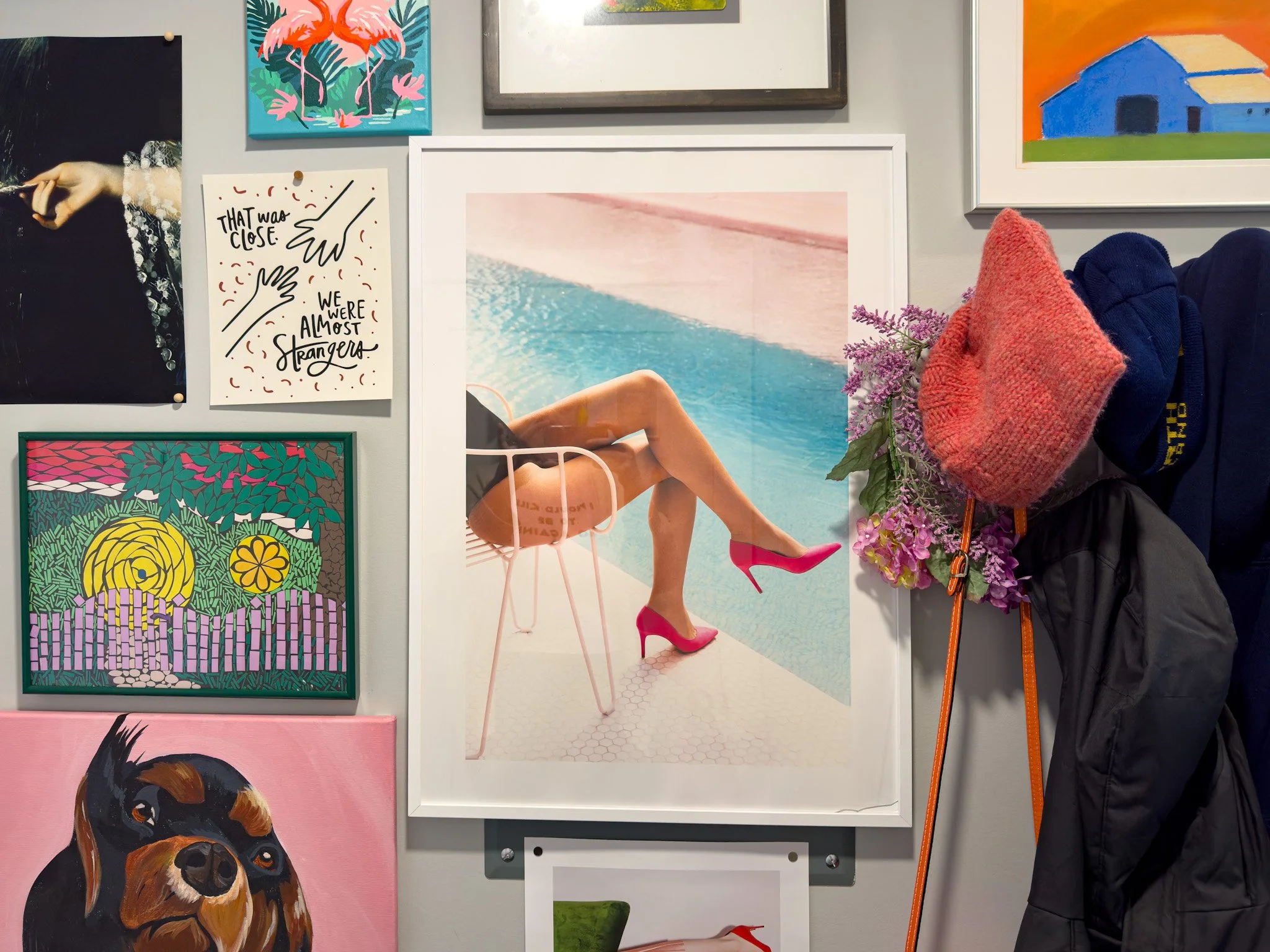 The art collection that I have for my own home includes paintings, street art, letterpress prints, objects and sculptures, collages, handwritten notes, snapshots, posters, and more. I can find you something special.